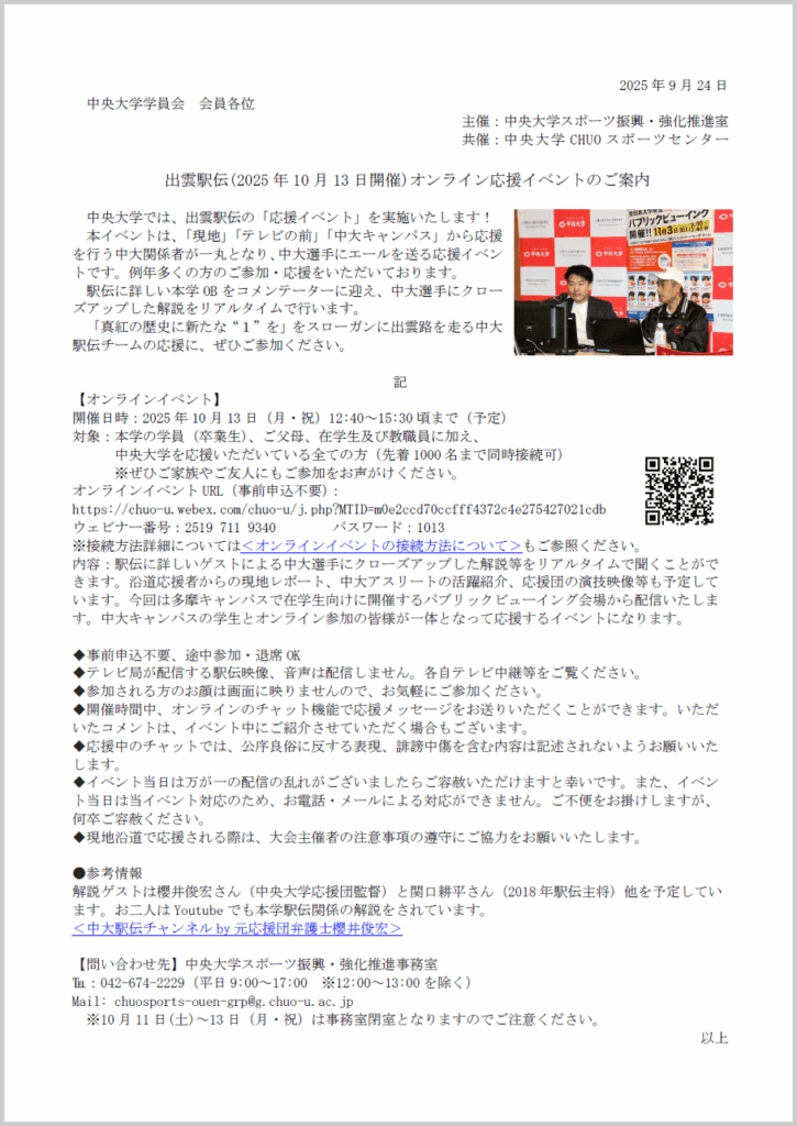 中央大学では、出雲駅伝の「応援イベント」を実施いたします!